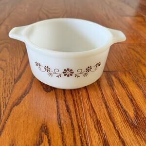 Dynaware Pyr-O-Rey Vintage Milk Glass Brown Daisy Casserole Bowl Dish Set of 4