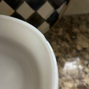 Vintage Dynaware Pyr-O-Rey Termocrisa Oval Milky White Casserole Dish with Brown Flowers. One small divot (see last picture)