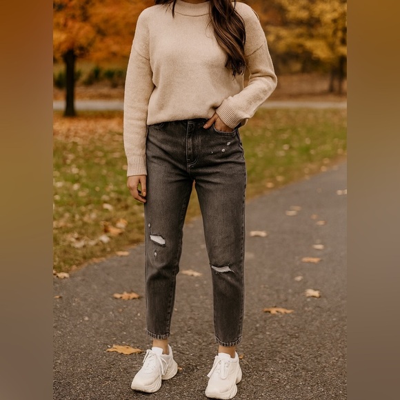 Dyndnm Claudia High Rise Mom Gray Distressed Jeans 29