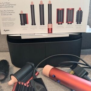 Gently used Dyson Airwrap Multi-Styler from the Special Edition collection in Strawberry Bronze/Blush Pink. This highly sought-after tool has only been a handful of times and is in excellent condition. Save big while getting salon-quality results at home! Includes: Multi-styler base 2 Airwrap barrels for curling/waving 2 smoothing brushes Round volumizing brush Pre-styling dryer Storage case Condition: Lightly used, like new. Packaged in original box and in perfect working order.