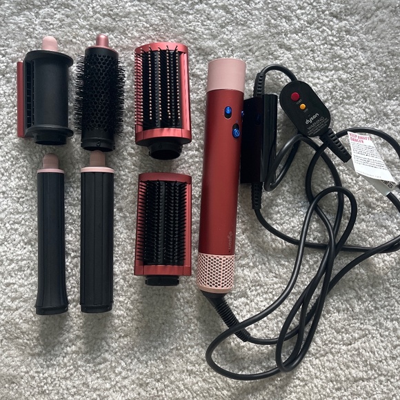 Strawberry Bronze/Blush Pink, in very good condition. This Airwrap is for straight or wavy hair. 6 detachable tools are included: Dryer+Flyaway smoother , Round Volumizing Brush, Firm smoothing brush , Soft smoothing brush, 1.2" Airwrap™ long barrel & a 1.6 inch Airwrap™ long barrel. This Dyson Airwrap does not come with a box or directions/ manual.