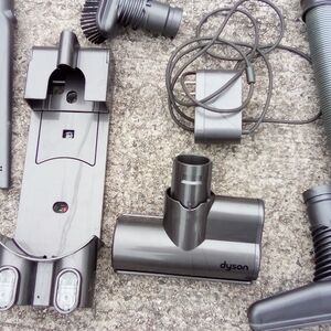 Optimize your VR setup with Dyson's accessory set. Sleek silver components for enhanced functionality.