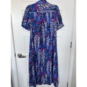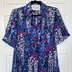 Dyvna Floral Print Short Sleeve Silk Blend Midi Shirt Dress Blue Size Medium In Excellent Condition