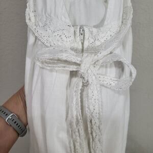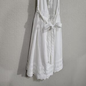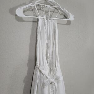 Dzarm White Halter Mini Dress Womens Small Summer Sundress Beachy Boho Cottage