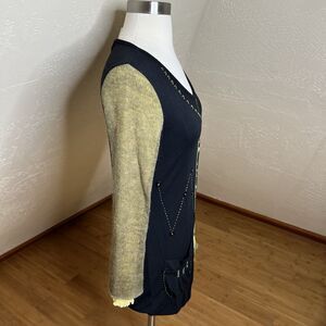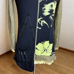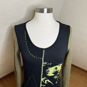Dzhavael Couture Tunic Top Size Small Black Green Mesh Fuzzy Sleeves Artsy Y2k