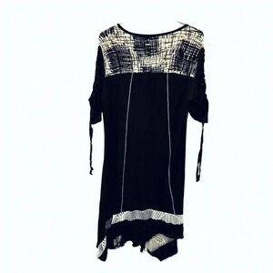 Very comfortable fabric that’s soft. A great dress that’s loose and not skin tight.