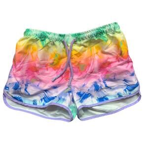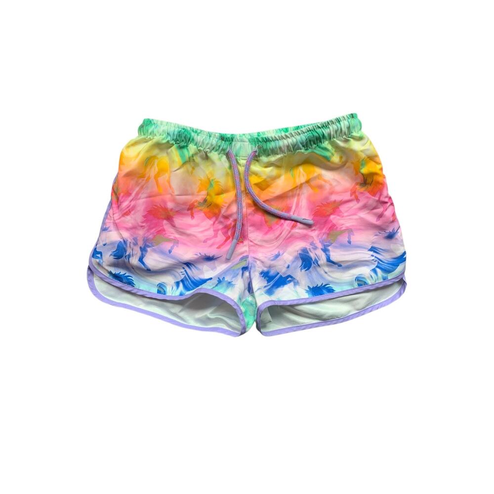 Colroful or rainbow unicorn print shorts with functional drawstring