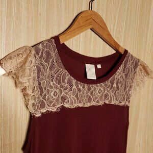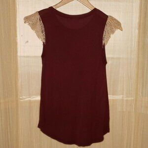 E By Eloise Womens Sleeveless Maroon Top With Cream Lace Small