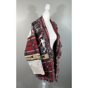 E Clair Designs Jacket Womens OS Blanket Fringe Tapestry Hunting Western Dog