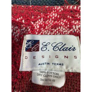 E. Clair Design tapestry/blanket woven jacket. In good pre-owned condition with a couple minor spots in the sleeve and some minor pilling. Please see pictures for measurements and condition.