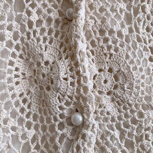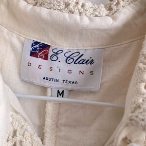 E. Clair Designs Vintage White Crochet Button Up Collared Top