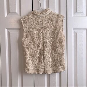 Vintage 100% Cotton crochet sleeveless collared shirt pearl buttons detail.