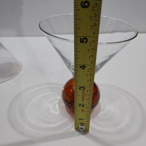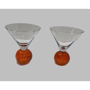 E Cointreau Martini Glasses Hand Blown Bubble Orange Ball Base Signed Barware