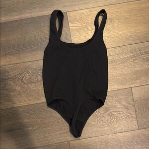 Sleek black bodysuit by Colsie. Features a scoop neckline and sleeveless design. Perfect for layering or wearing alone.