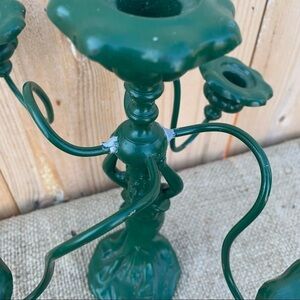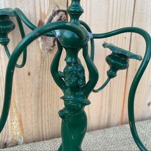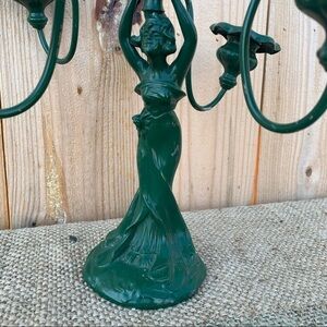 Antique silver plate candelabra made by E. G. Webster & Son, at some point was painted green as you can see. The arms were loose on this, they just fit into holes. I glued them back and they seem to be ok now just not sure how long they will hold in place.
