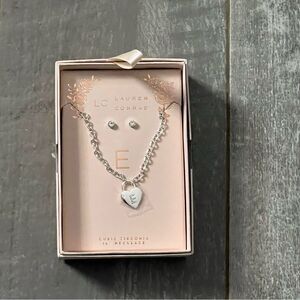 E Heart Silver Necklace and Cubic Zirconium Earrings Set
