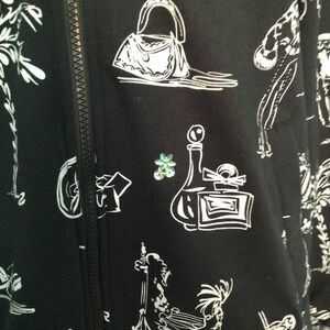 ADORABLE double zip jacket by ELLC. Sequin details. Fashion and vacation scenes on it. 2 pockets in front and small pocket on sleeve. Really cute jacket! All measurements are approximate and taken flat and zipped closed.