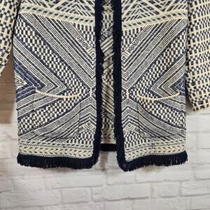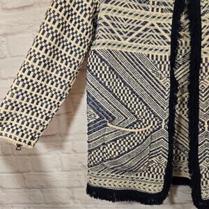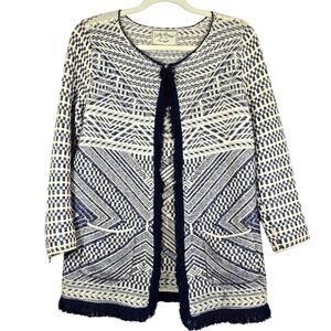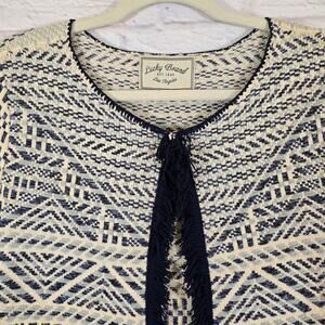 E Lucky Brand Navy Cream Geo Knit Cardigan Sweater Size M Boho Southwestern Cute details: