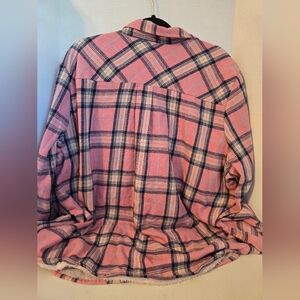 E. Luna Pink Plaid Button-Up Flannel Shirt 3X.