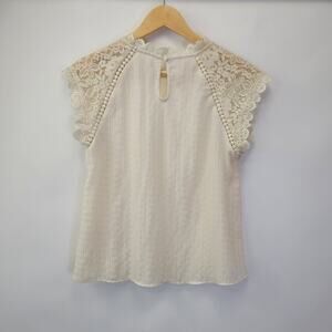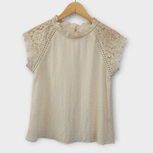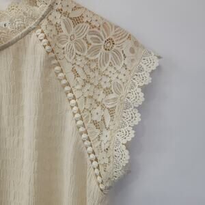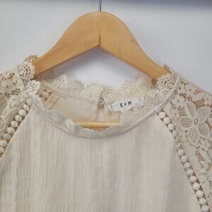 E & M Top Size Medium Cream Lace Sleeves Lightweight Boho Coquette Feminine