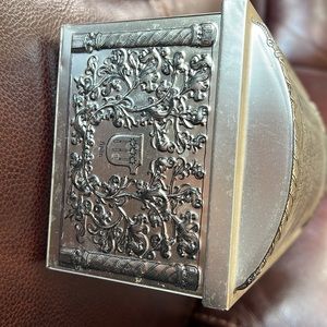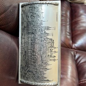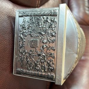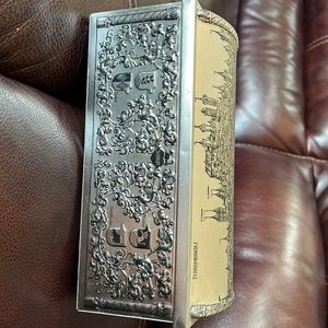 It measures approx. 9 1/4" long x 4 1/2" wide and 4 1/4" tall to top of lid.