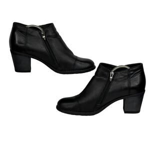 E Scott Women's Leather Bootie SZ 39 Made In Italy Heeled Boot Comfort Black Zip