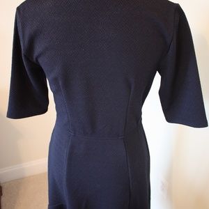 E Shakti Dropped Hem Jacquard Dress. 3-Quarter length sleeves and an attractive V-neck. Perfect for the office. Knee Length - Size 8