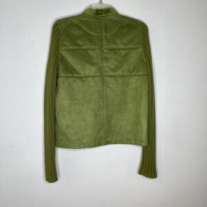 E Studio Y2K 90s Olive Green Jacket Women's S Faux Suede Knit Sleeve Snap
