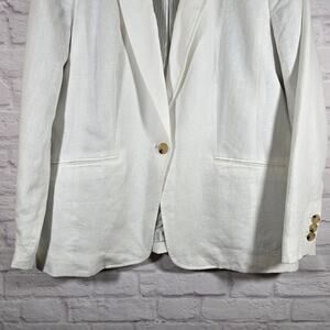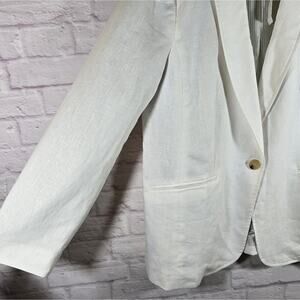 E Talbots White Classic Linen Blazer Women Plus Size 16 NWT Summer Office Casual