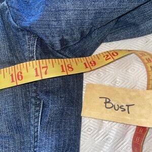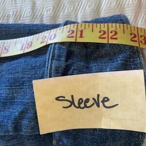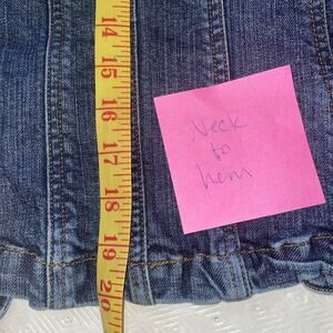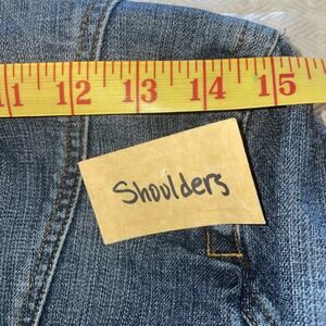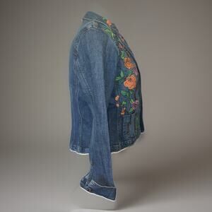 E by ECI Tailored Jacket Blue Denim Embroidered Floral Collared Snaps Read Size