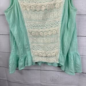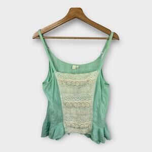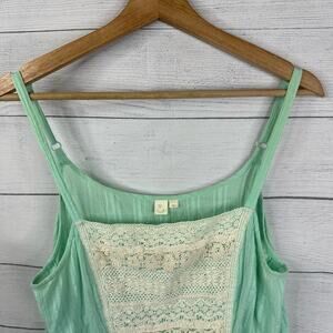 E by Eloise Anthropologie Womens size Large Gauzy Crochet Overlay Tank Top Blue