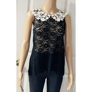E by Eloise Women Black Sleeveless Blouse Medium Lace Romantic