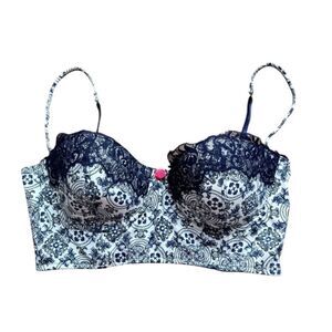 E by Eloise x Anthropologie Corset Bra, Blue & White 32B