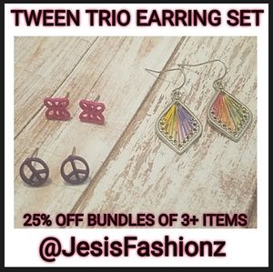 E1462 3pr Peace String Teardrop Butterfly Earring
