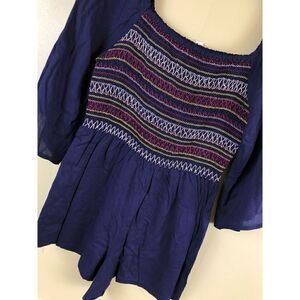 E-156 Angie smocked embroidered romper shorts BLUE size S nwot