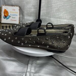 (E2) Michael Kors Ailee metallic leather flats with silver studs, size 8.5M.