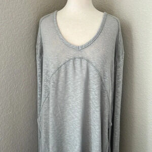 E2 brand oversized grey tunic. Very flowy fit, size M/L. Long sleeves with wide v-neck neckline. Cute stitching details remind me of Free People. Very comfy fabric! Slit/open sides. Measurements of this top are taken with the item laid flat. Please feel free to ask any questions. I’m open to offers on all items. Color may vary based on lighting and device used to view this item. Purchasing this item acknowledges that you have viewed all pictures, read entire description, and asked questions if applicable prior to purchase!! Thank you so much for checking out my closet!