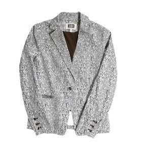 Tags: Etcetera, E3, blazer, jacket, snake print, animal print, brown, white, neutral, sophisticated, chic, professional, casual, modern, stylish, versatile, cotton blend, women's, designer, contemporary,