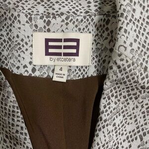 E3 By Etcetera Snake Print Blazer Jacket Size 4 Brown & White Career Wear