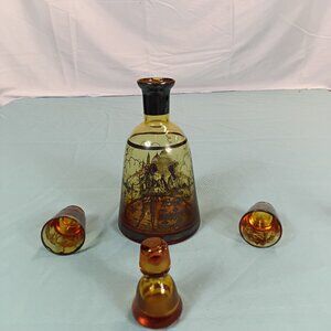 E3-7 Venetian Amber Glass Decanter and Glasses