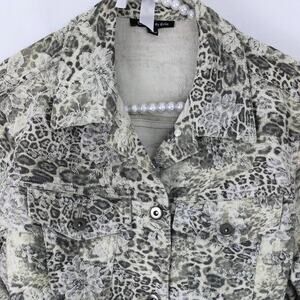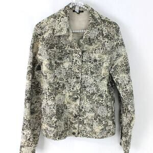 E39 by Eric Women's Jacket Animal Print Floral Gray Stretch Jacket Size 4