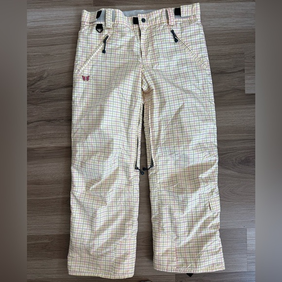 E480 SNOWBOARD SKI PANTS TURBINE Boardwear Butterfly Pink Plaid Girl's XL