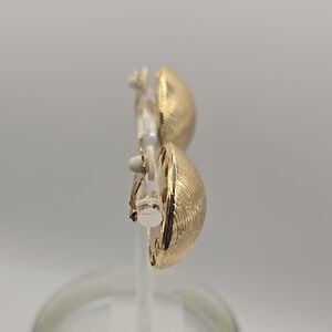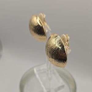 Chic round clip-on earrings with a textured gold-tone finish. Perfect for any occasion.