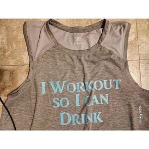 ▪︎DESCRIPTION: Gray athletic tank top w screenprint, "I workout so I can drink"
