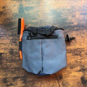 E9 Rock Climbing/Boulder Chalk Bag w/ Adjustable Strap and Chalk Brush | Navy Blue & Black w/ Orange Brush | OS
