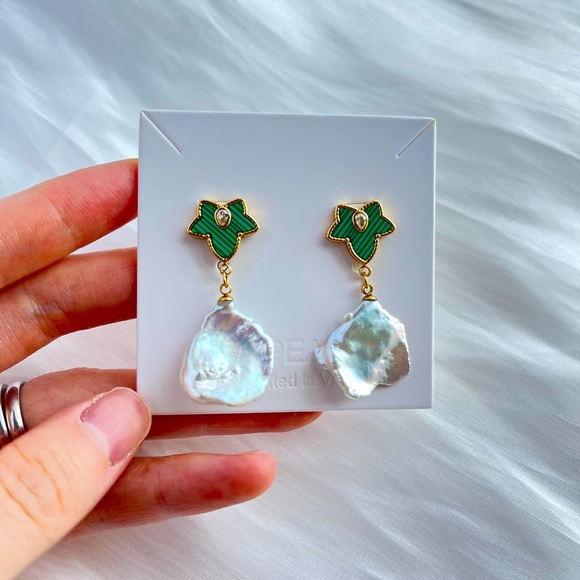 Earring materials: 18k gold plated over stainless steel & malachite style post