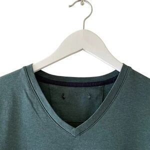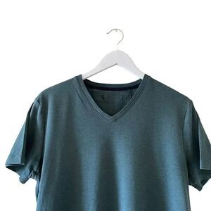 EAC Luxury Solid Green Short Sleeves Cotton V-Neck Basic T-Shirt SZ M