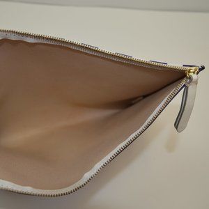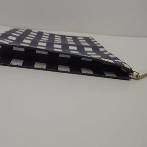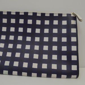 EAC blue and white plaid clutch. Made of a leather-like material (no materials tag). 11.5 in length, 9 in talll, 1 in wide