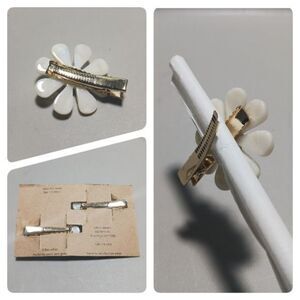 EACH Jewels Flower Daisy Hair Clip Barrette (2-Pack) (Pearl White & Gold)