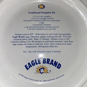 EAGLE BRAND Pie Plate Traditional Pumpkin Pie Recipe by Woodmere China 1999